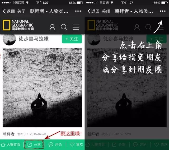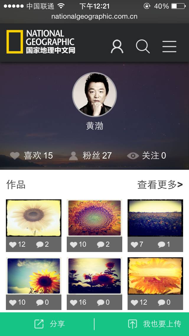 手机登陆m.nationalgeographic.com.cn,进入摄影大赛网页,一定会有不少人好奇得点开下面这个页面。当然每个参赛者的个人页面都是如此。
