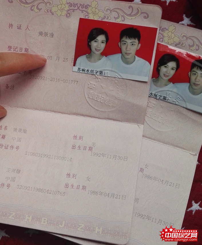 黄景瑜前女友王雨馨的助理晒出两人结婚证(资料图)