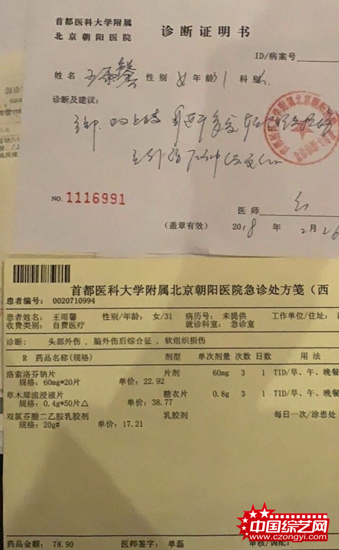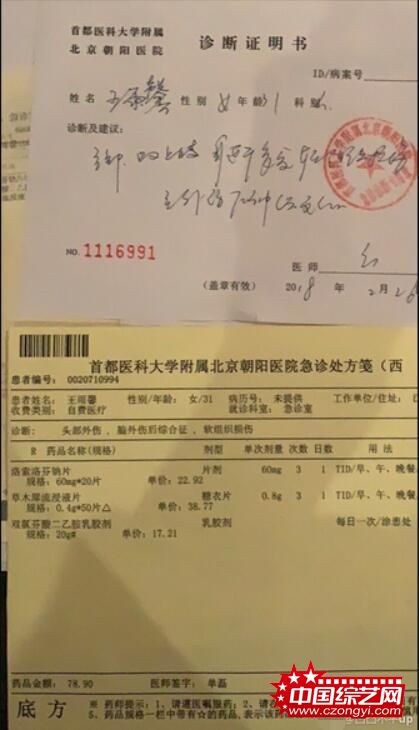王雨馨的助理晒出的疑似王雨馨遭遇家暴的证据中,王雨馨脸部受伤,并有医院的诊断报告。