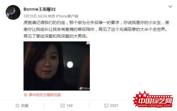 5月16日,王雨馨发文疑似轻生,表示再见了这个充满恶意的大半个全世界,再见了曾经深爱和我深爱的大男孩,随后王雨馨助理发长文表示,王雨馨在昏迷中,经过抢救已经脱离生命危险。