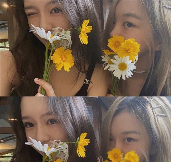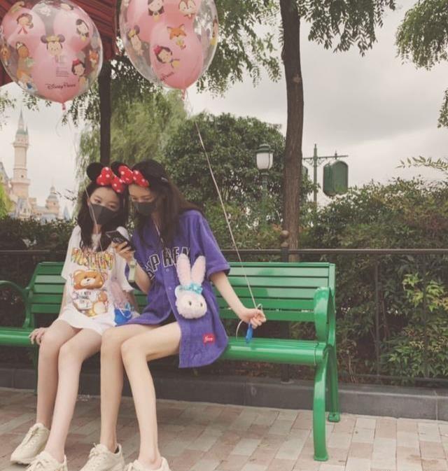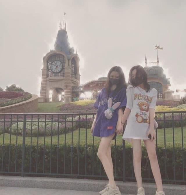 也看得出这两个小家伙感情相当之好了,不仅一起在游乐场游玩,还穿着同框卫衣和跑鞋自拍,之后的照片中,两人也是大秀闺蜜情,时而牵手时而坐在一起看手机。
