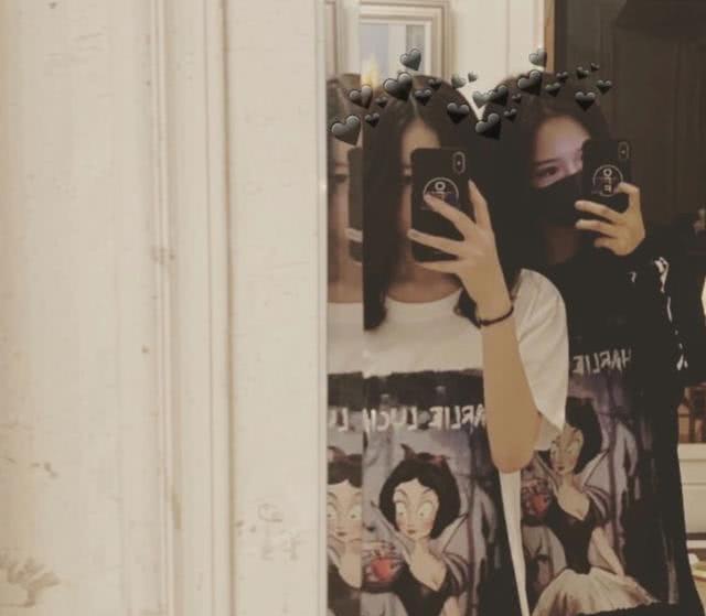 李嫣和闺蜜一同自拍,对着镜头各种拍pose,相当爱美了~