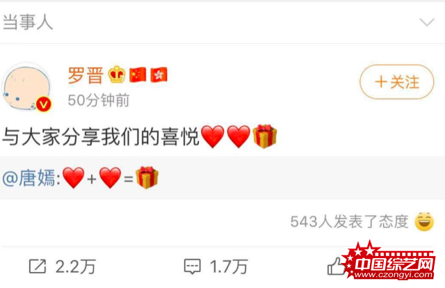 2016年12月6日,唐嫣公开与男友罗晋的恋情。2018年10月28日,唐嫣罗晋宣布婚讯,小两口分别配文“新娘是我”“新郎是我”,发布九宫格甜蜜照片。两人之后在维也纳低调办婚礼,只小范围邀请亲友。