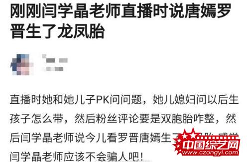 今年2月,闫学晶被曝直播时透露唐嫣罗晋生了龙凤胎。