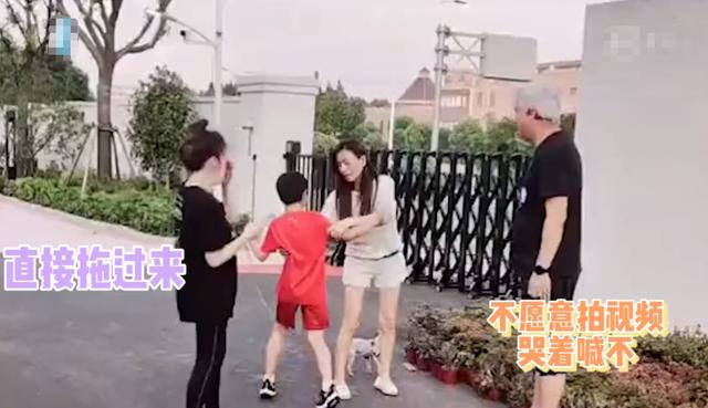 不过,儿子林秉翰显然是不愿意的,不仅全身都在抗拒,并且哭喊着说"不",还想要转身离开。这时,张庭丝毫不理会儿子当下情绪如何,直接将儿子硬拖过来,强迫他拍视频营业。