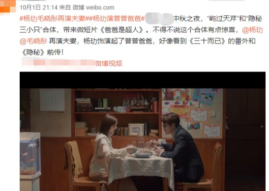 10月1日,中秋晚会上,毛晓彤和杨玏再次饰演夫妻。引得网友纷纷表示“还没从三十而已中走出来,新的又来了,这对cp锁了”。
