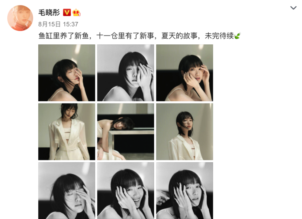 而几天后,8月15日,毛晓彤就发文称:"鱼缸里养了新鱼,十一仓里有了新事,夏天的故事,未完待续",疑似暗示和杨玏成为真情侣,让无数粉丝惊呼自己又相信爱情了。