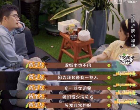 陈学冬还在节目中爆料称,也有一些女明星,她们很少洗头发,头发非常的好。