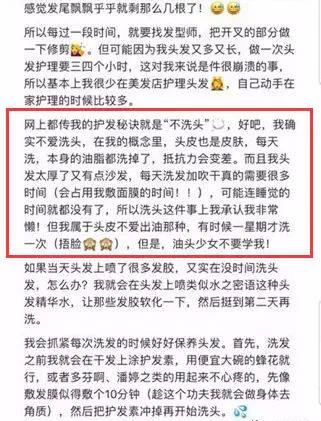 据悉,范冰冰就曾透露自己护发的秘诀是不洗头,在她看来头发也是皮肤,每天洗(头皮)本身的油脂都洗掉了,抵抗力会变差。