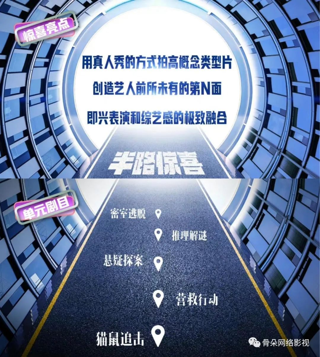 待播片单中,芒果TV的迷综王牌节目《密室大逃脱4》在列,《大侦探7》热播中;爱奇艺的《萌探探探案2》《奇异剧本鲨2》也已提上了日程;而从优酷新综《头号密室》、腾讯视频新综《开始推理吧》的项目计划可窥两大平台也早已按捺不住入局迷综的野心。另外,腾讯视频的新综艺《半路惊喜》则是以公路前进为背景的剧情综艺,叠加了“公路前进”和“密室逃脱”类型。