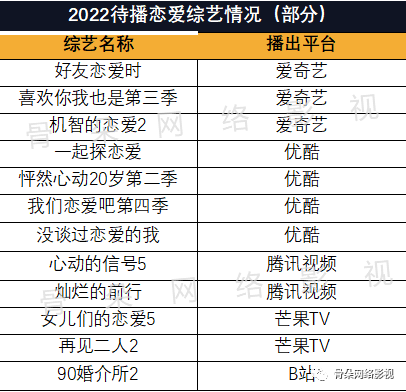 平台待播片单中,爱奇艺的《好友恋爱时》以“红蓝知己间发生爱情的可能性”为主题,试图探讨在现实生活中争吵不休却从来没有定论的问题。腾讯视频的《灿烂的前行》则聚焦失恋男女,展开一段治愈失恋之旅。优酷的《一起探恋爱》将实景剧本杀游戏和日常约会深度绑定,开启恋综+迷综的元素叠加新模式,新恋综《没谈过恋爱的我》聚焦母胎solo新话题人群;芒果则将继续推出《再见爱人2》。