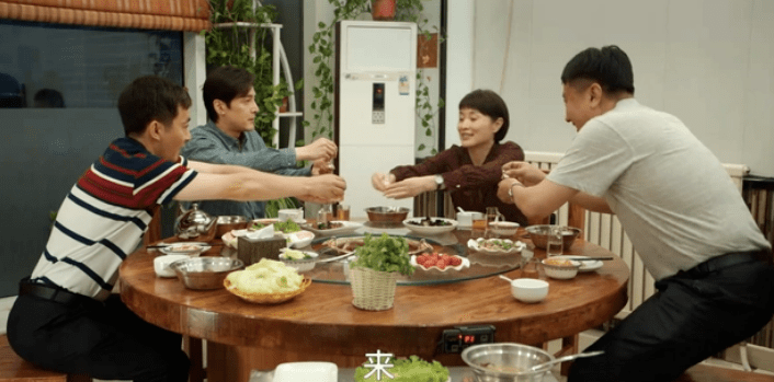 还有这场在饭桌上敬酒吃饭的戏份,胡歌的表现也明显不如吴越自然,那种硬凹的老成之气,在角色代入感上就差了很多。