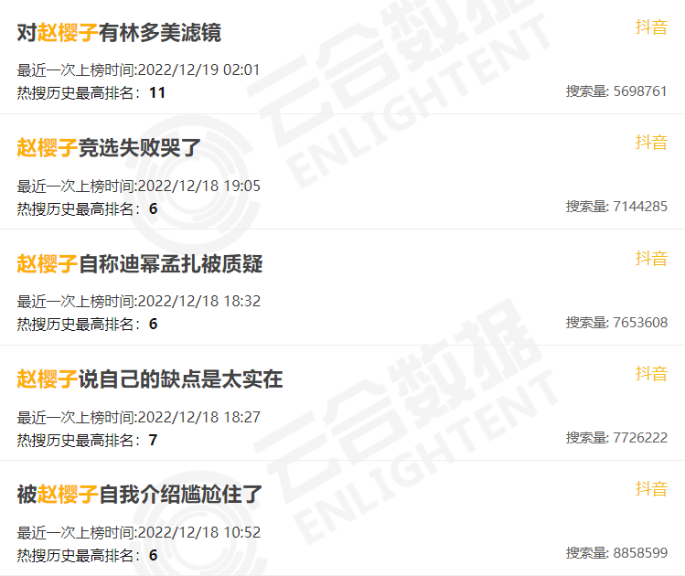 最近,你追“迪幂孟扎”了吗?能在“世界杯”决赛当天抢到热搜位,是不容易的。如果一个人能接二连三地抢到,那不得不让人心生佩服。比如,自cue“迪幂孟扎”的赵樱子同学。12月18日,赵樱子靠着一句“迪幂孟扎”数登热搜。这个词出自正在热播的演员竞演类综艺《无限超越班》,由浙江卫视、优酷以及TVB共同出品。