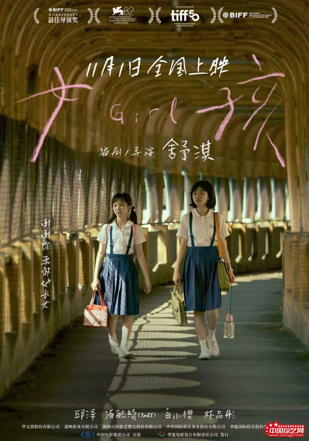 电影《女孩》由华文创股份有限公司、嘉映影业有限公司、海纳百川影艺整合股份有限公司、中环国际娱乐事业股份有限公司、华能国际娱乐股份有限公司出品,中国电影集团公司引进,华夏电影发行有限责任公司发行,将于11月1日全国上映,大银幕共同见证属于女孩的真诚与勇气。