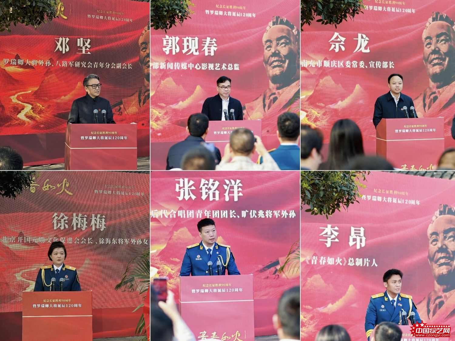 罗瑞卿大将外孙、八路军研究会青年分会副会长邓坚,公安部新闻传媒中心影视艺术总监郭现春,北京开国元勋文化促进会会长、徐海东将军外孙女徐梅梅,中共南充市委党校党史研究室副主任姜华,南充市公安局党委委员、政治部主任覃国胜,区委常委、区委宣传部部长佘龙,开国将军合唱团青年团成员旷伏兆将军外孙-张铭洋(团长)、解方将军孙女-解宇飞(政委)、陈锐霆将军孙-陈悦(副团长)、赖传珠将军孙女-彤霜、原公安部副部长许建国孙-杜向峰、原中顾委委员舒同孙-舒晚、陈坊仁将军孙女-陈毳毳、陈再道将军孙女-陈岚、卢仁灿将军外孙女-路璐、刘亚楼将军外孙女-王娜、赵镕将军外孙女-张婧菲、刘彬将军外孙-陈众、张明远将军孙女-张蕾、肖劲光将军孙女-肖雨青、吴岱将军孙女-吴禹薇、谭政将军孙女-谭斌、钟期光将军孙-钟以山、原政协副主席包尔汉外孙-伊力亚沙希迪、李志民将军孙-李林赛共同参加开机仪式。